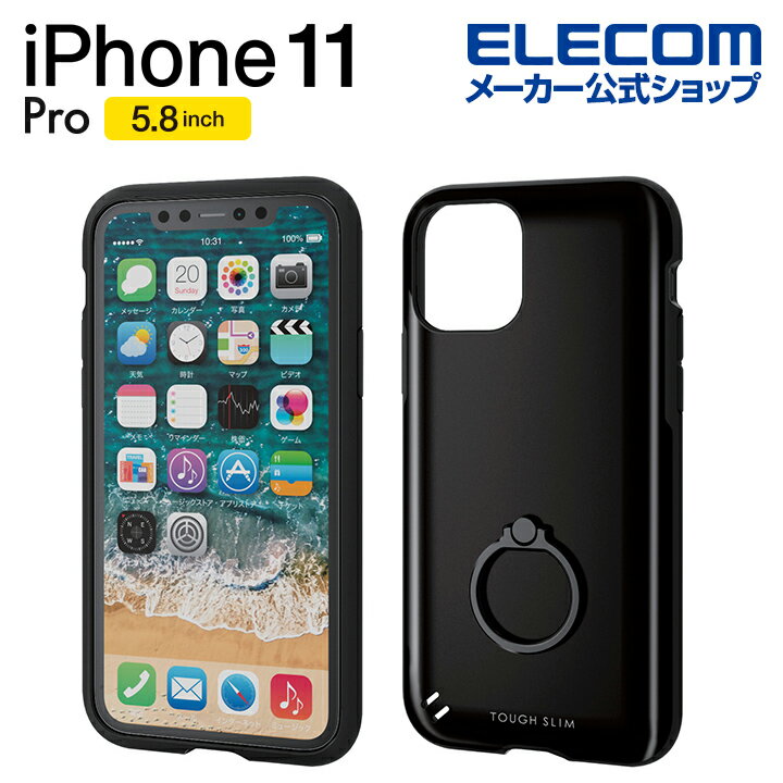 エレコム iPhone 11 Pro 用 TOUGH SLIM リング付き ケース カバー iphone5.8 iPhone11 Pro iPhone11Pro 新型 iPhone2019 5.8インチ 5.8 スマホケース リング スマホリング タフスリム シンプル フィンガーリング エアクッション 衝撃 吸収 耐衝撃 ブラック PM-A19BTSRBK
