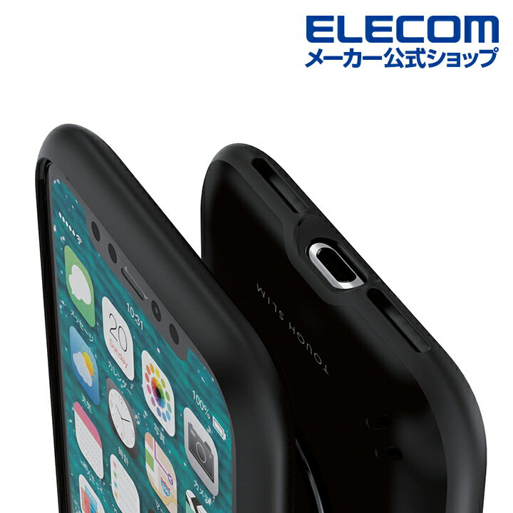 エレコム 耐衝撃ケース iPhoneXs iPhoneX ブラック 落下防止リング付き 衝撃吸収 スタンド機能付き 全周エアクッション ハニカム構造 シンプル TPU+ポリカーボネート ハイブリッド TOUGH SLIM 5.8インチ PM-A18BTSRBK