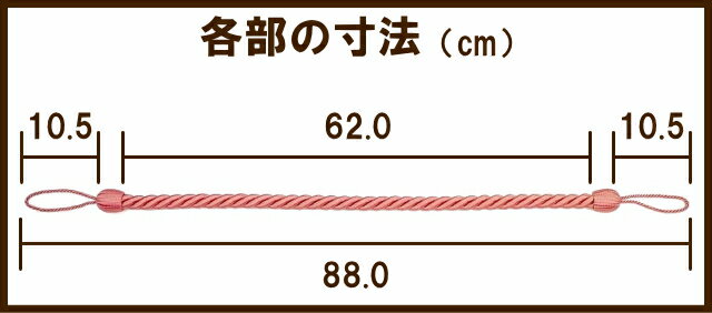 全長:約88cm ロープの太さ:直径約1.9cm (詳しくは画像「各部の寸法」をご参照ください。